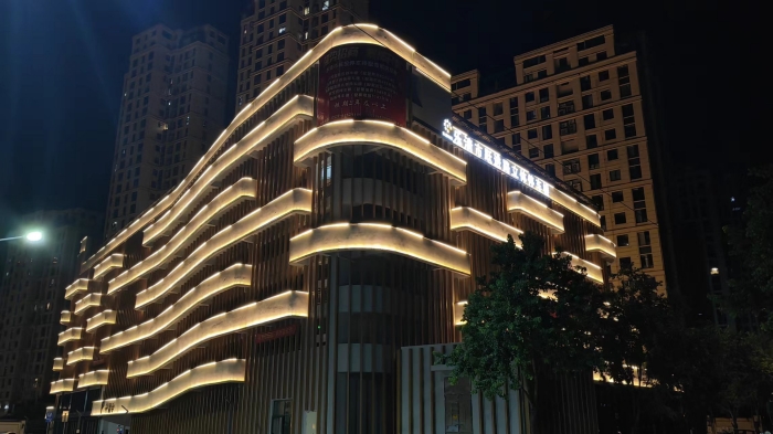 玉箫路不夜街、国宾府停车楼、党校停车楼夜景亮化调试完成